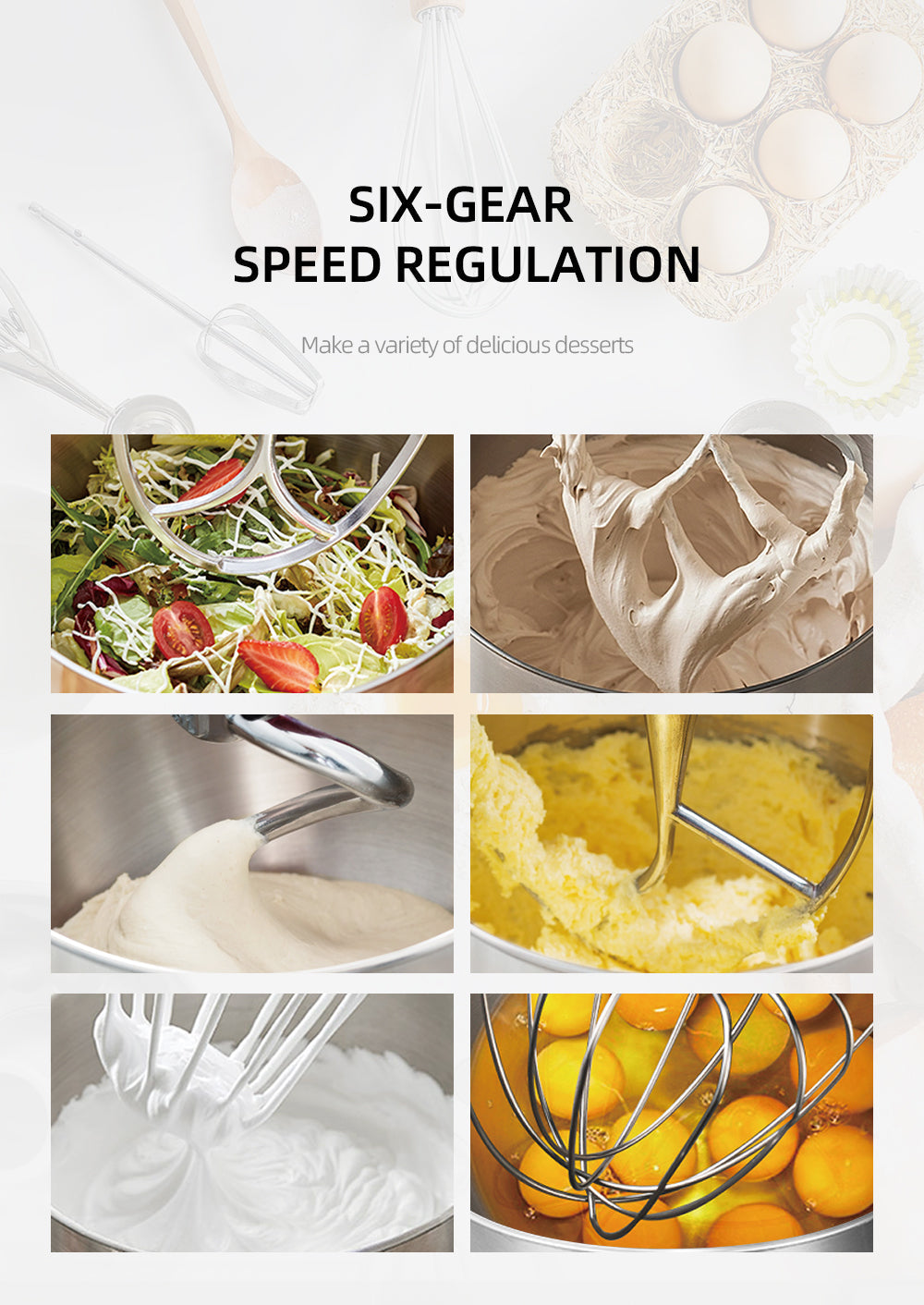 Reglaj fin cu 6 trepte de viteza (gear speed regulation) – adapteaza ritmul la fiecare reteta