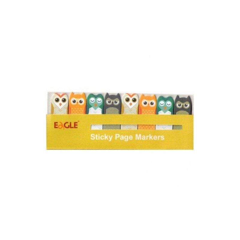 Notes adeziv index Eagle TYSN7388, 120 coli, 15x50mm, hartie, forma bufnita, set 8 modele
