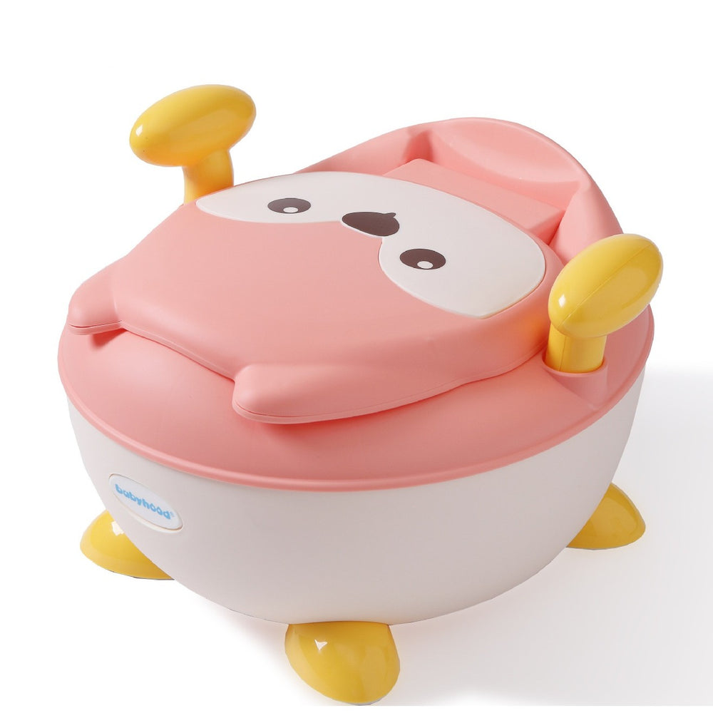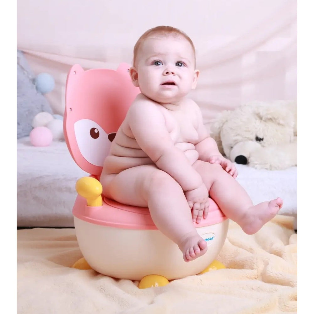 Olita pentru Copii, Kadeny, +6 luni, Compartiment Detasabil, cu Capac, Antiderapanta, din Plastic, Colac Moale, Model Animat Vulpe, cu Maner, 34.5 x 35 x 23 cm, Roz/Alb
