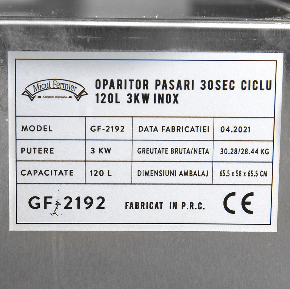 Oparitor pasari 30 sec ciclu 120L 3kW Inox