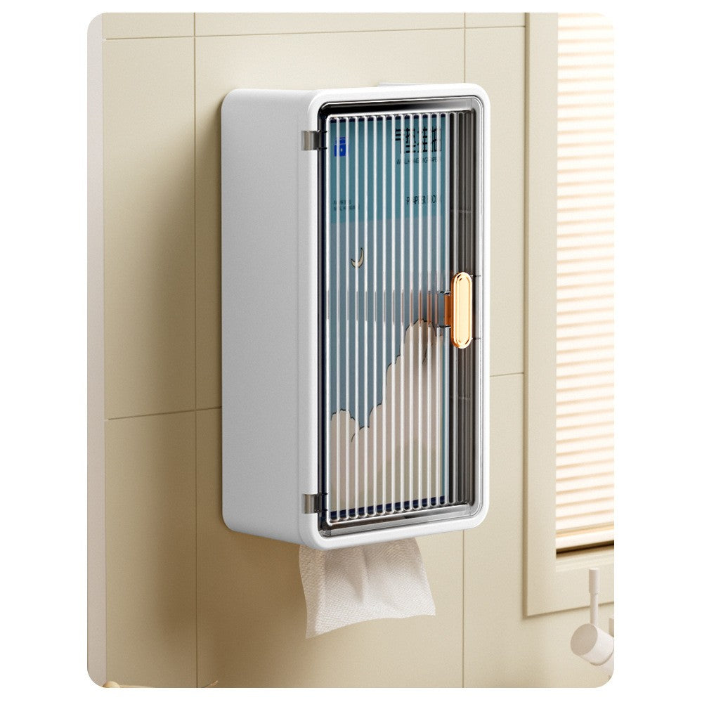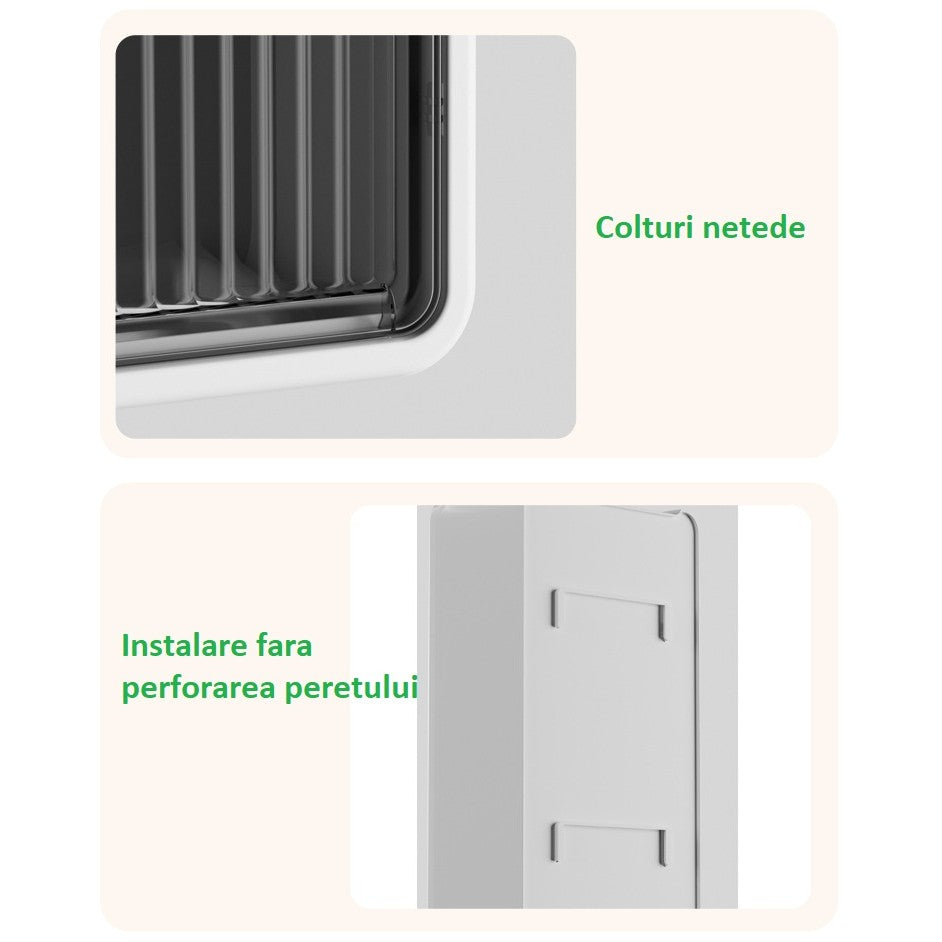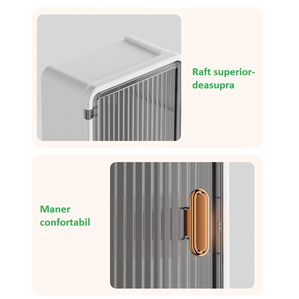 Organizator Cosmetice, Kadeny, Montare pe Perete fara Perforare, 36.5x10.9x20 cm, din PP si ABS, Alb-Negru, Usa Transparenta