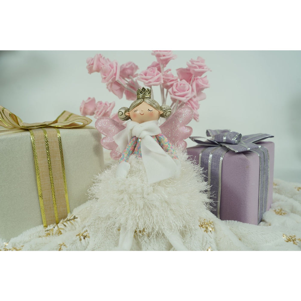 Decoratiune ingeras Ingeras adorabil cu aripi roz, fusta alba si coronita aurie, este un plus pentru bradul de craciun, in fereastra sau orice loc din casa ce are nevoie de spirit festiv. |