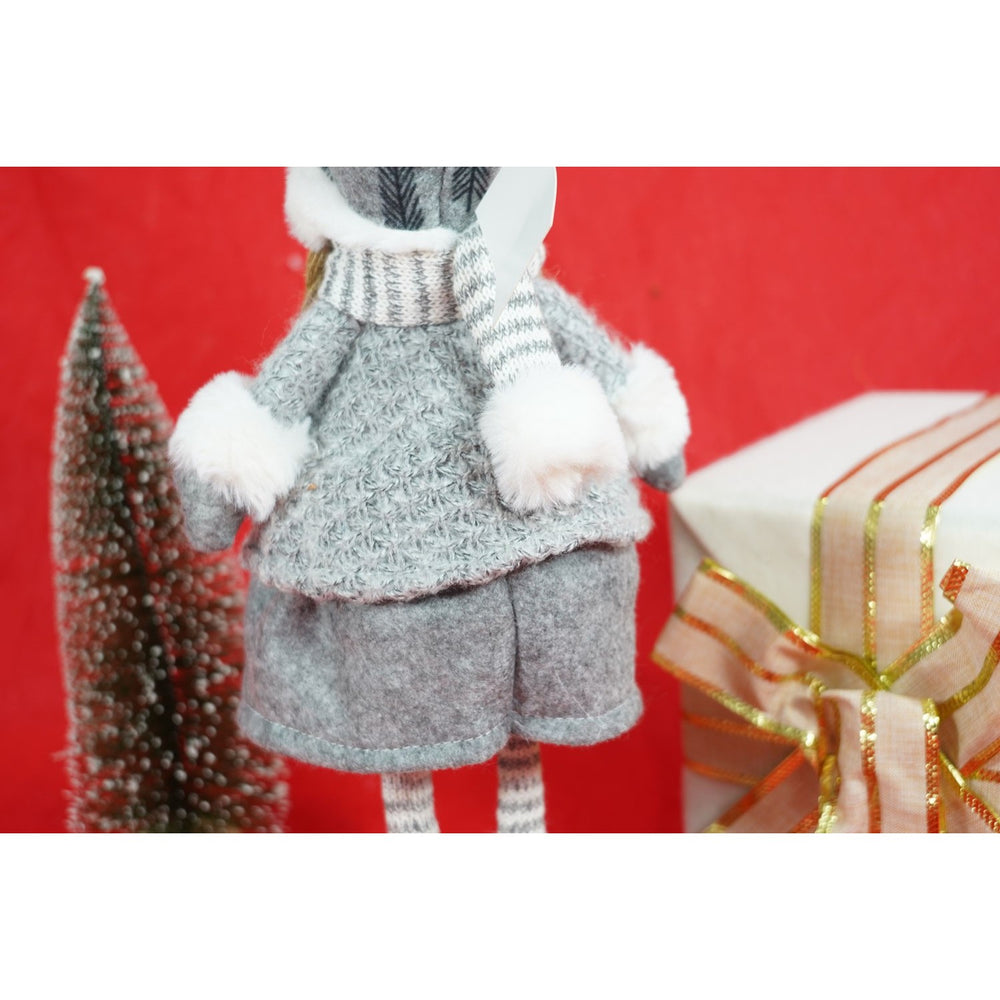 Decoratiune ingeras Fetita adorabila cu palarie gri, fusta si incaltaminte gri, fular gri cu alb. Acest model este facut sa stea in picioare. |