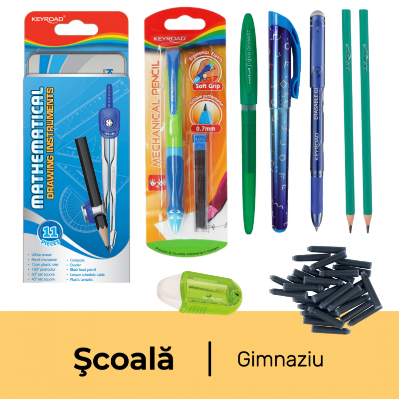 Pachet rechizite scoala clasele 5-8, Instrumente de scris, baiat, 9 piese