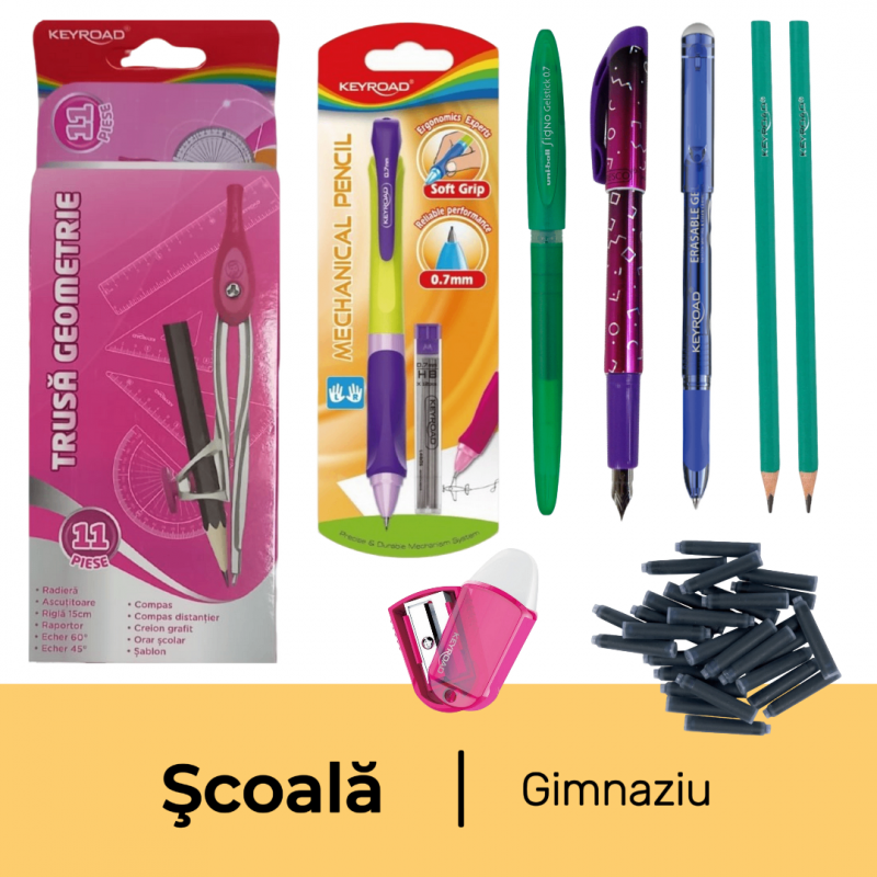 Pachet rechizite scoala clasele 5-8, Instrumente de scris, fata, 9 piese
