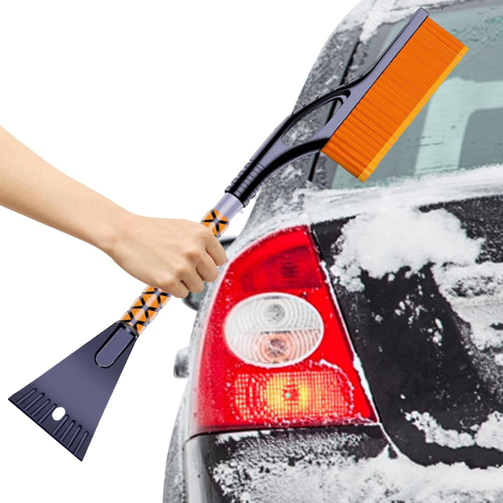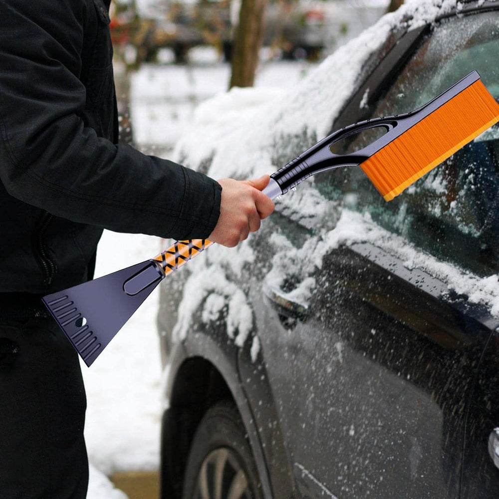 Perie Moale și Rezistentă: Cu peri moi, peria garantează că nu vei zgâria vopseaua mașinii în timpul utilizării, în timp ce totodată este suficient de robustă pentru a îndepărta stratul de zăpadă acumulată.