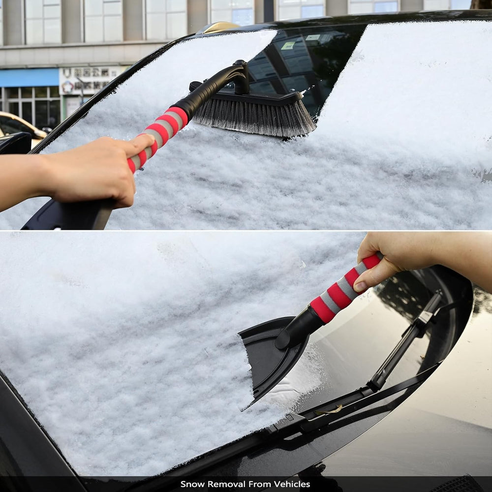 Perie de Zapada cu Racleta pentru Masina, Kadeny, Multifunctionala, Rotativa, Demontabila, cu Maner Antiderapant, Aluminiu, Plastic, Fragmentarea Ghetii de pe Parbriz, Solutia pentru Iarna, pentru Dezghetare, 54x10.5x27 cm, Rosie