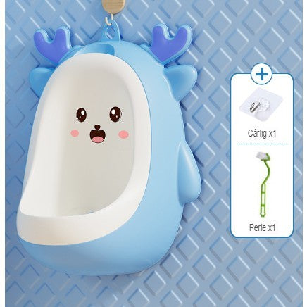 Pisoar pentru Baieti, Kadeny, 0-8 Ani, in Forma de Cerb, Perie Inclusa, Montare pe Perete, Carlig Autoadeziv Inclus, 29.8 x 23.8 cm, Albastru