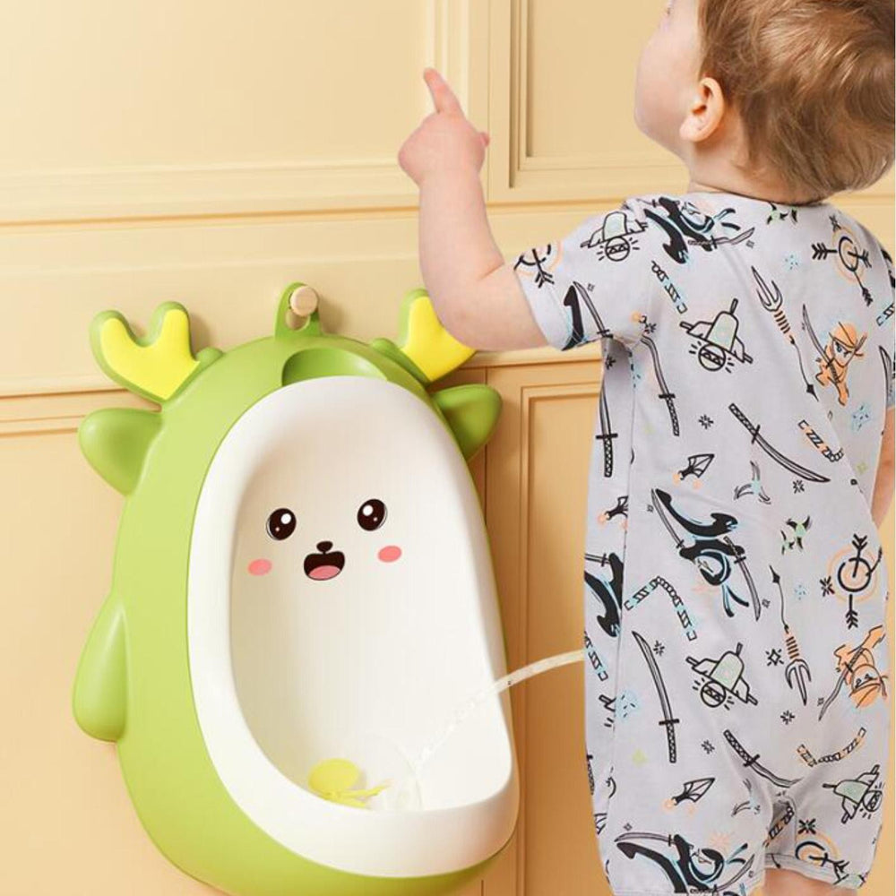 Pisoar pentru Baieti, Kadeny, 0-8 Ani, in Forma de Cerb, Perie Inclusa, Montare pe Perete, Carlig Autoadeziv Inclus, 29.8 x 23.8 cm, Verde