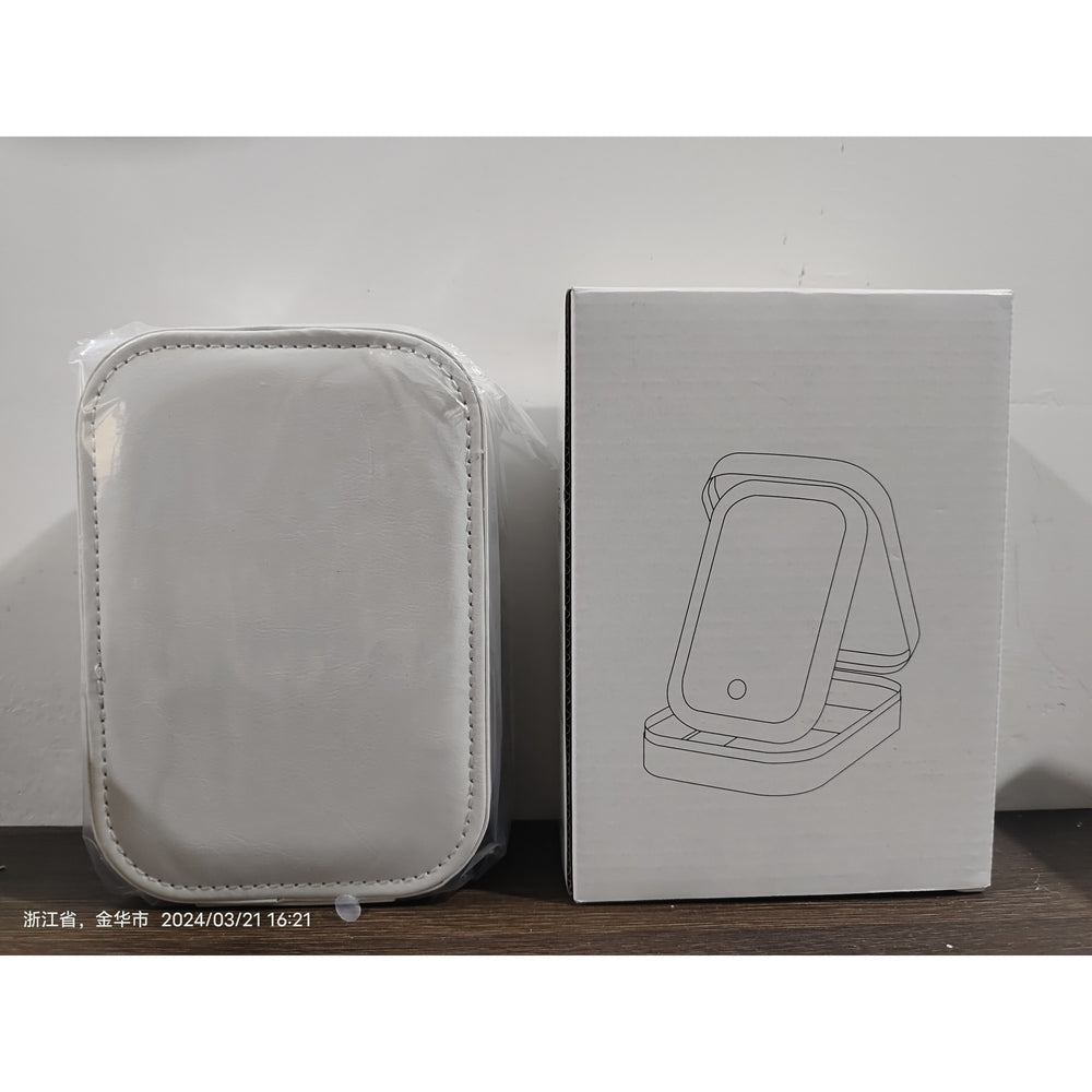 Portfard, Flippy, Geanta Cosmetice, cu Oglinda LED, Incarcare USB, Baterie 1200 mAh, pentru Organizarea Cosmeticelor, 4 Compartimente, Imitatie Piele, Alb, 16.5x11.5x6 cm