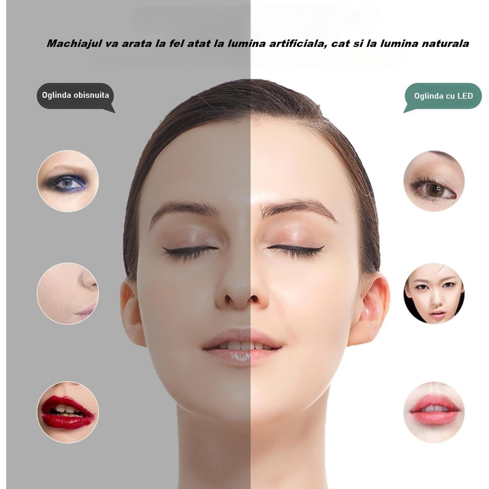 Portfard, Flippy, Geanta Cosmetice, cu Oglinda LED, Incarcare USB, Baterie 1200 mAh, pentru Organizarea Cosmeticelor, 4 Compartimente, Imitatie Piele, Verde, 16.5x11.5x6 cm