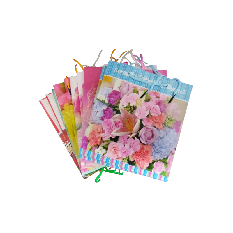Punga cadou, 16x18x8cm, manere din sfoara, diverse imagini cu flori