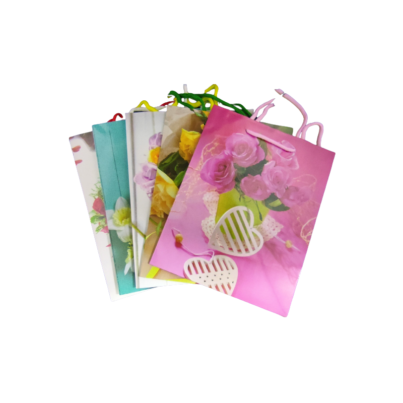 Punga cadou, 23x18x10cm, manere din sfoara, diverse imagini cu flori