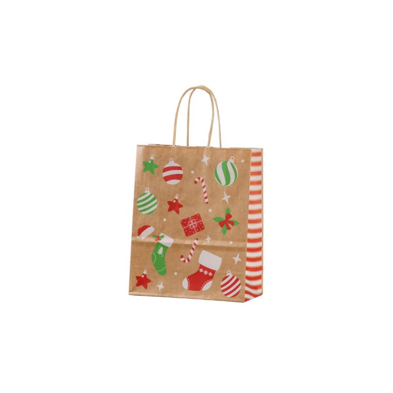 Punga cadou Craciun Colorarte 27665, B5, 18x22x8cm, 90g/mp, kraft, manere din hartie rasucita, motive Craciun globulete