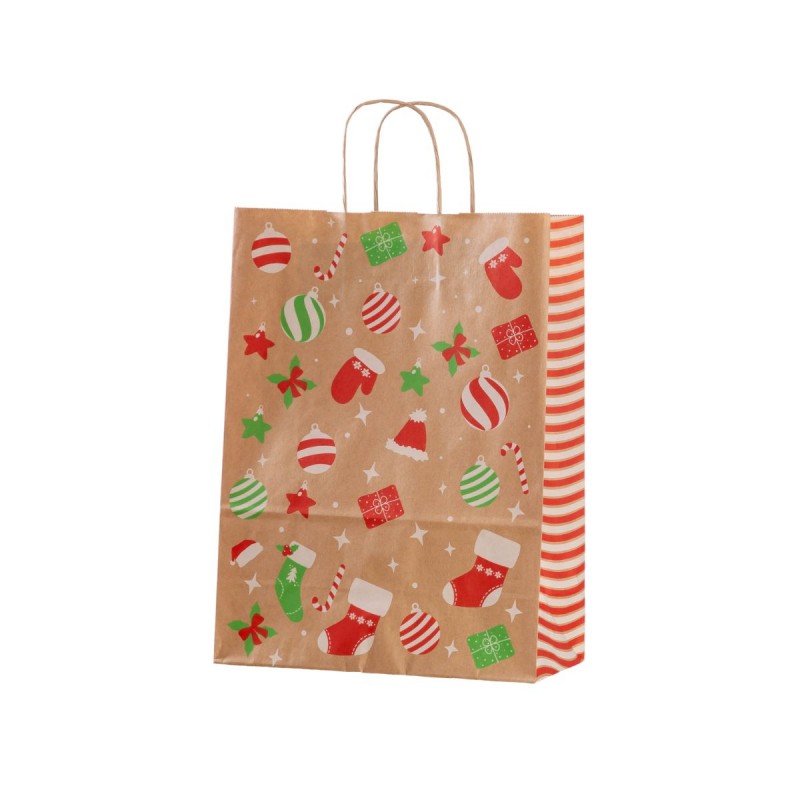 Punga cadou Craciun Colorarte 27671, B4, 26x35x12cm, 90g/mp, kraft, manere din hartie rasucita, motive Craciun globulete