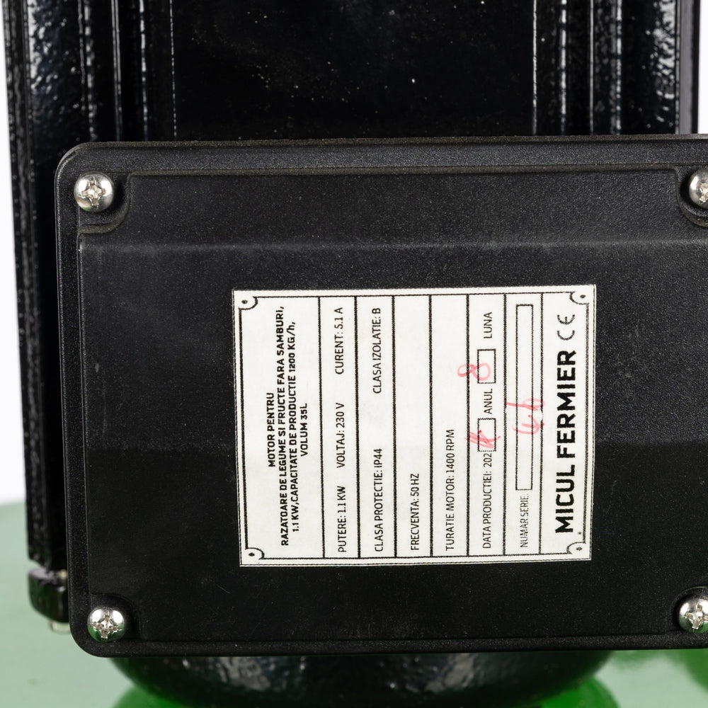 Razatoare de legume si fructe fara samburi Micul Fermier, 1.1KW, capacitate de productie 1200Kg/h, volum 35L