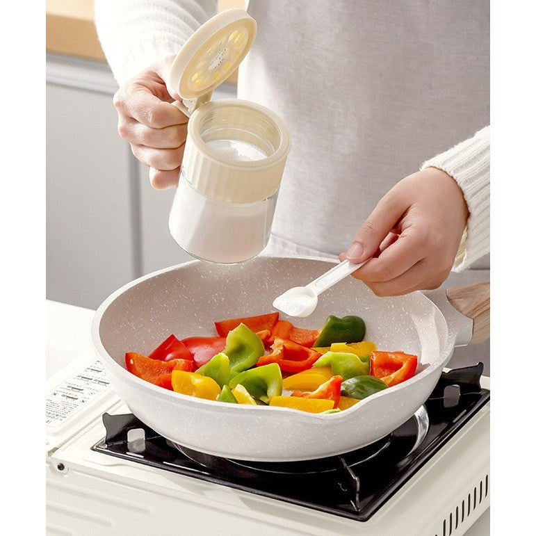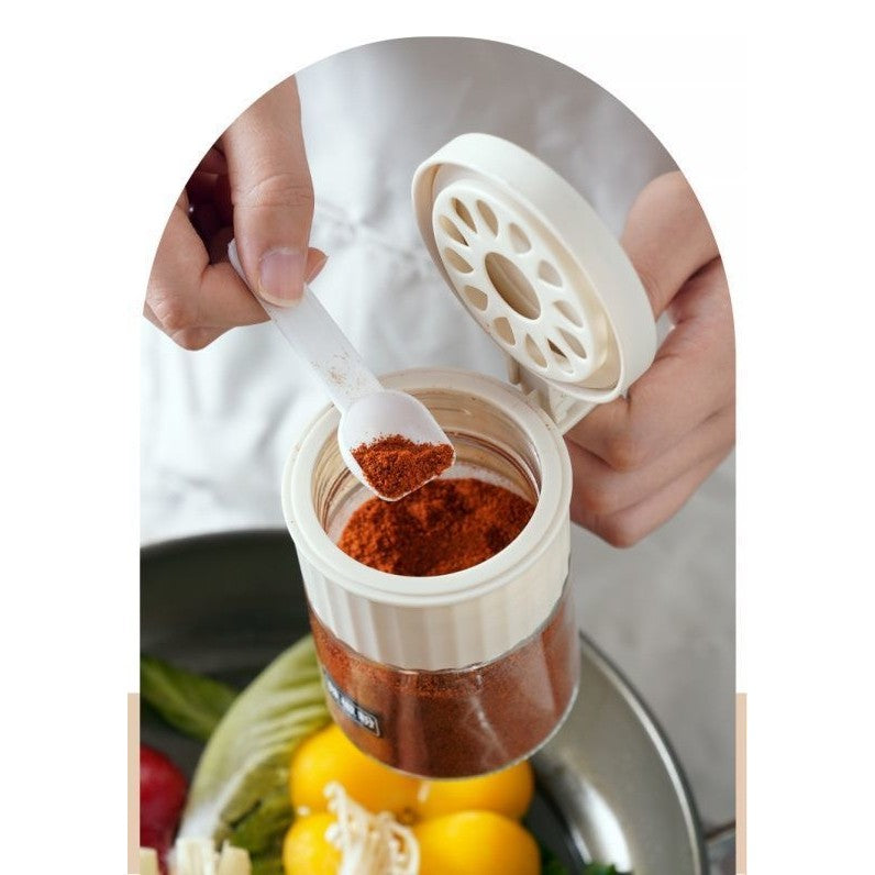 Recipient Condimente, Kadeny, din Stilca, 180 ml, cu Maner si Lingurita, 10.6 x 7 x 7 cm, Capac Mat, Alb
