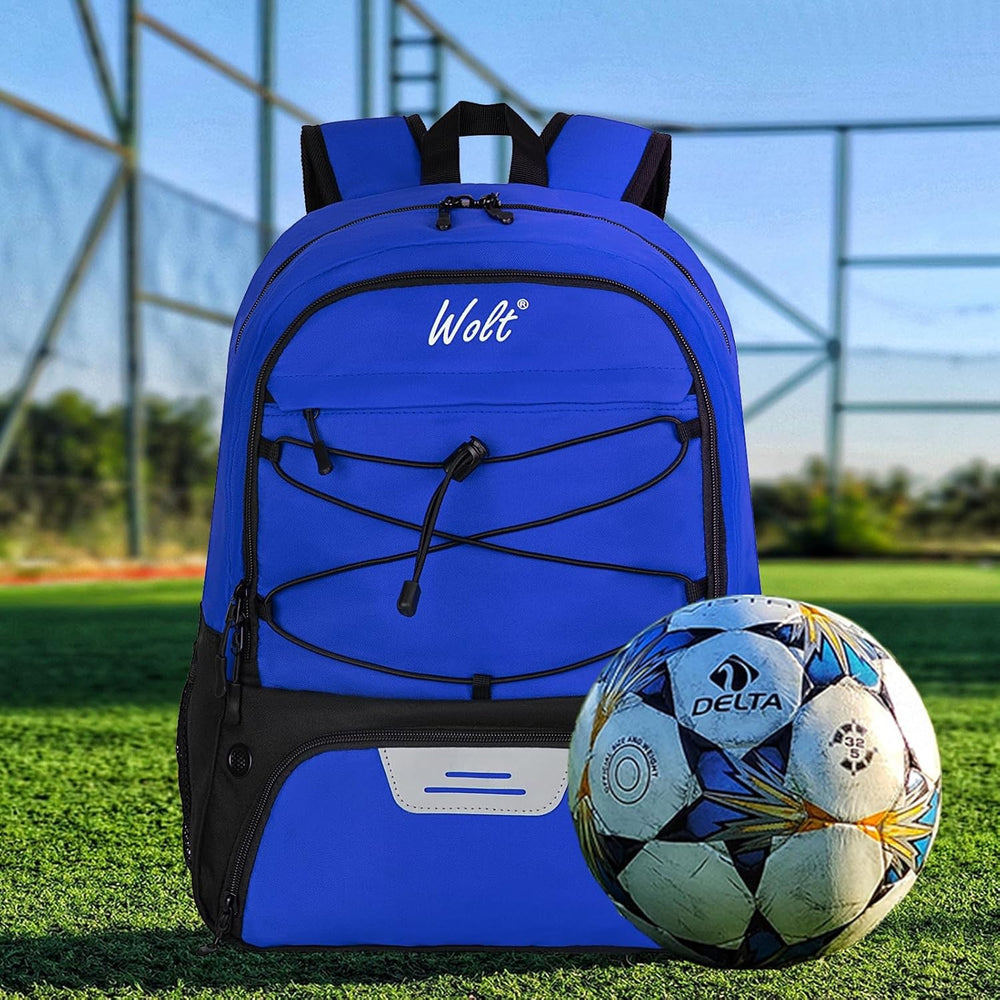 Rucsac de Baschet Multifunctional, Kadeny, pentru Calatorie, Sport, Scoala, cu Compartiment pentru Pantofi si Minge, 32 Litri, 45x32x22 cm, Albastru-Negru