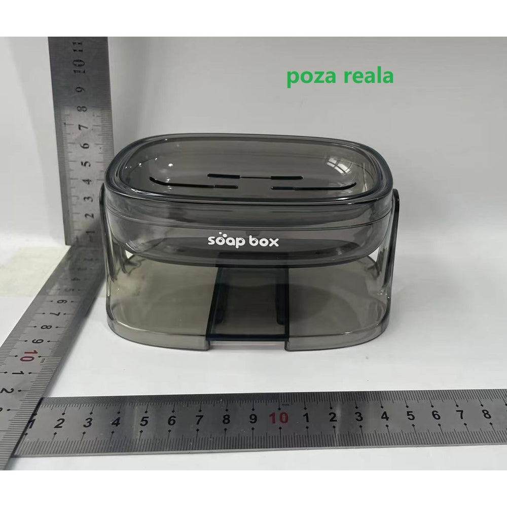 Savonieră cu Suport 2 în 1, Flippy, pentru Perete sau Blat, PET, Scurgere Optimă, Gri