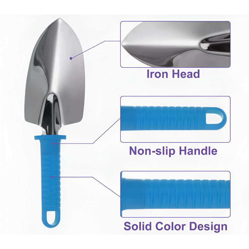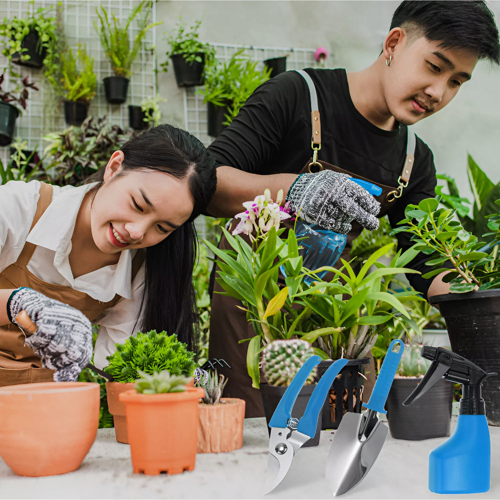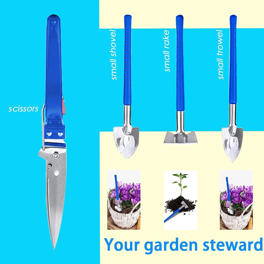 Set 10 Unelte de Gradina, Kadeny, pentru Plantare Prelucrare Sol si Ingrijire Plante, Manere Albastre, Material PVC si Otel Inoxidabil, Cutie Inclusa, 37x28x7 cm, Negru