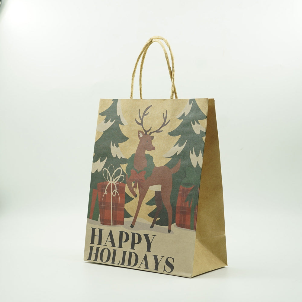 Set 12 Pungi Cadou, Kadeny, Imprimeu Tematica Craciun, Model Random, din Hartie, Impachetare Usoara a Cadourilor, 18.5x22.5x8.5 cm, Multicolor