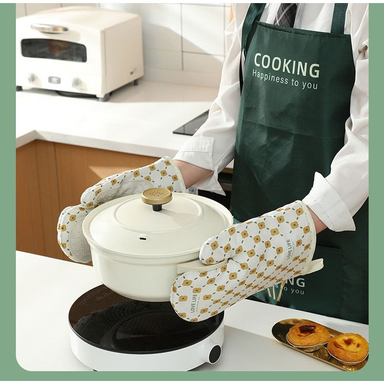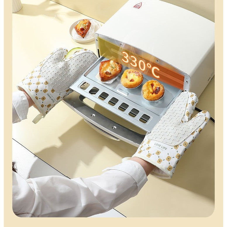 Set 2 manusi cuptor Kadeny, manusa de bucatarie,  rezistenta 330 grade, textil si cauciuc, 26.5x18 cm, alb