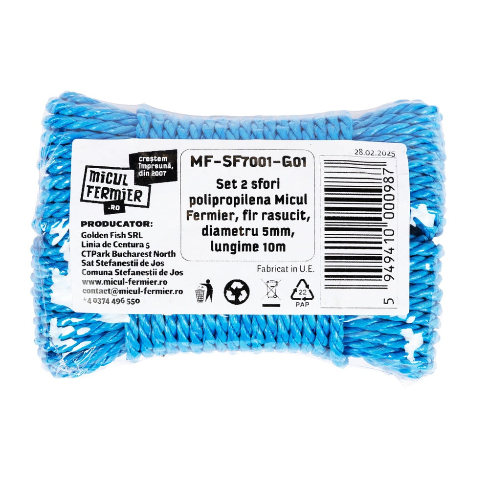 Set 2 sfori polipropilena Micul Fermier, fir rasucit, diametru 5mm, lungime 10m