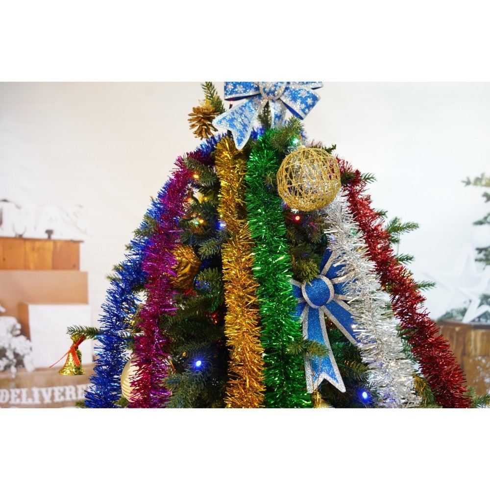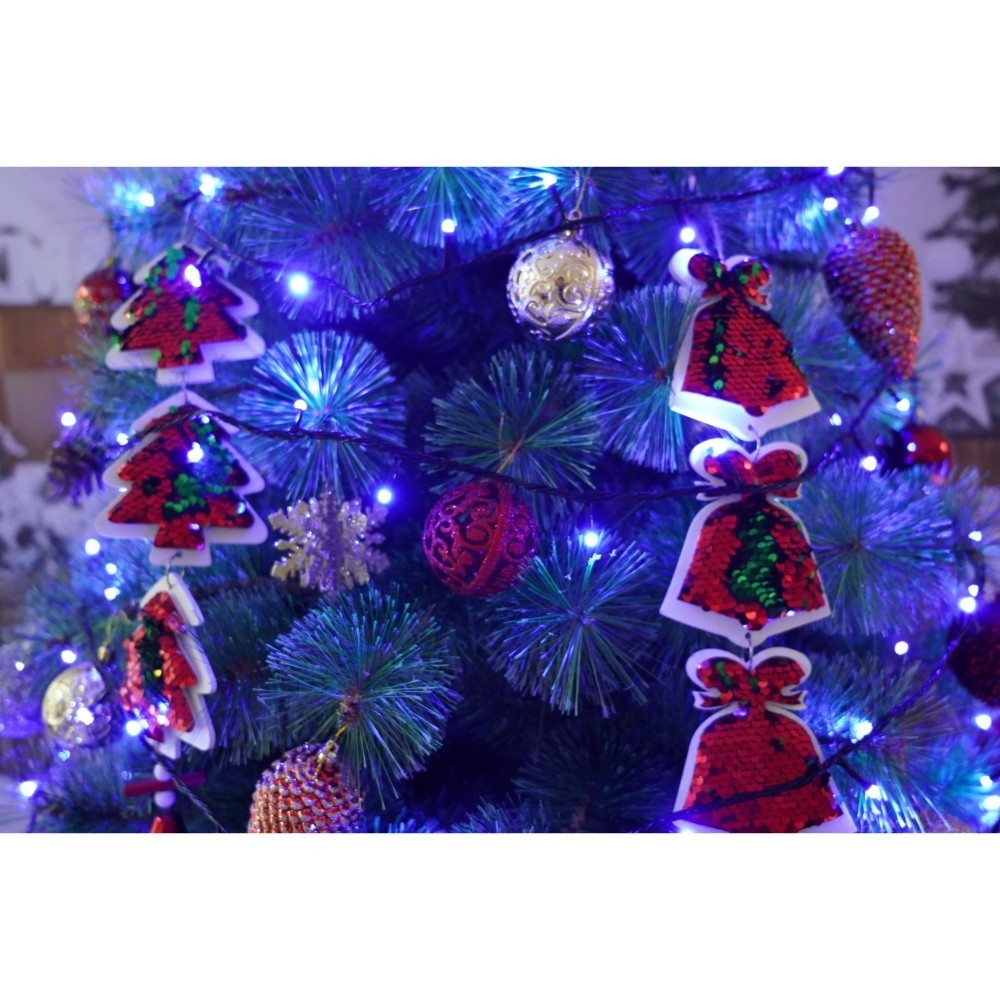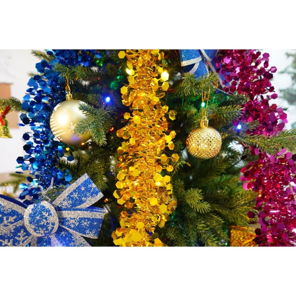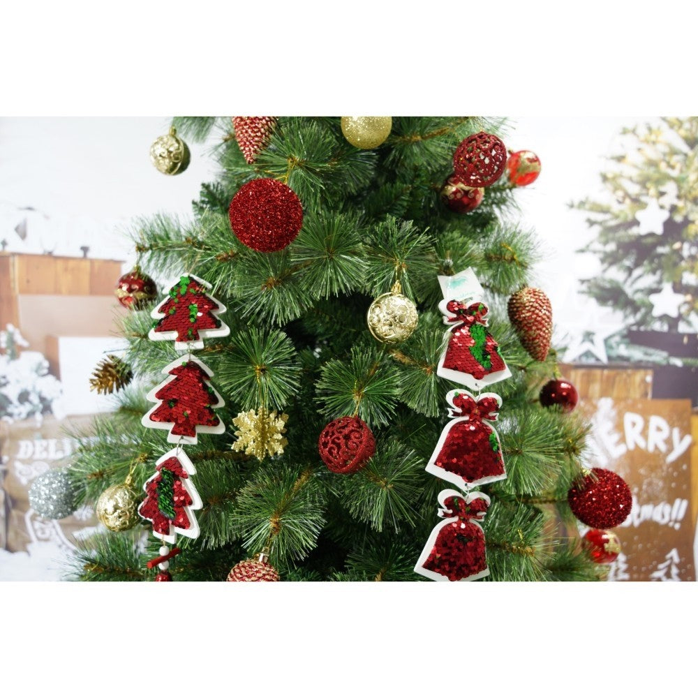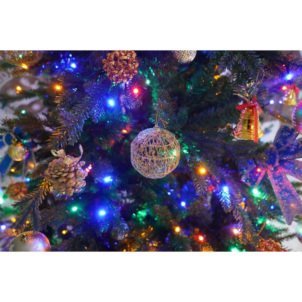 Set brad artificial de Craciun si elemente decorative, Becuri led incluse in ramuri, pentru interior/exterior, inaltime 180 cm, diametru 128 cm, 1246 ramuri, Kadeny, verde, suport metalic inclus