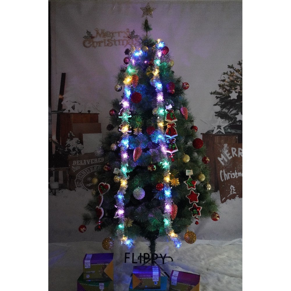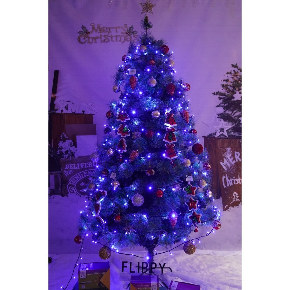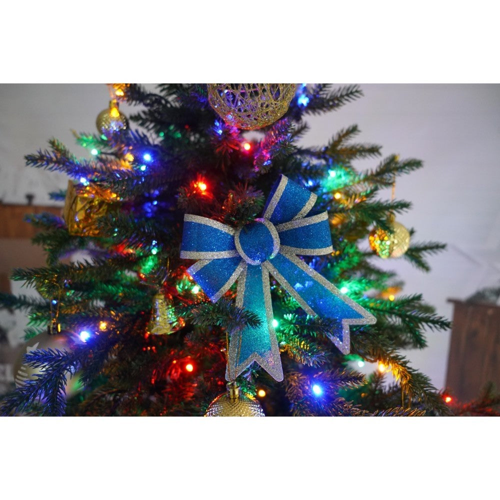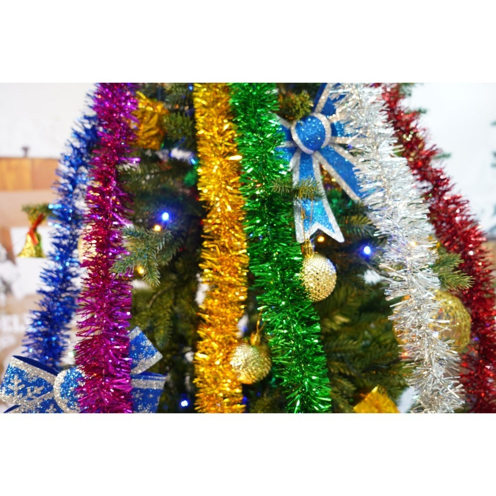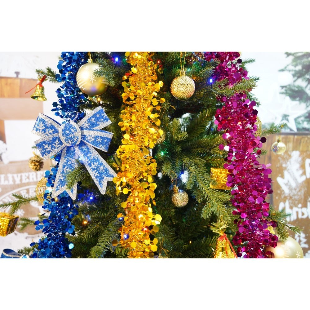 Set brad artificial de Craciun si elemente decorative, Becuri led incluse in ramuri, pentru interior/exterior, inaltime 180 cm, diametru 128 cm, 1246 ramuri, Kadeny, verde, suport metalic inclus