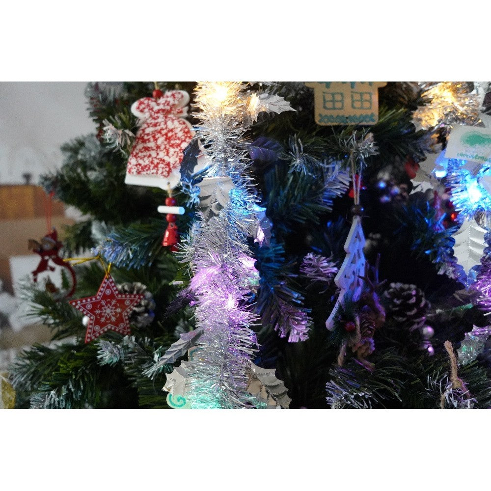 Set brad artificial de Craciun si elemente decorative, nins, decorat cu conuri pin, pentru perete/colt, inaltime 210 cm, diametru 149 cm, 1224 ramuri, Kadeny, verde, suport metalic inclus