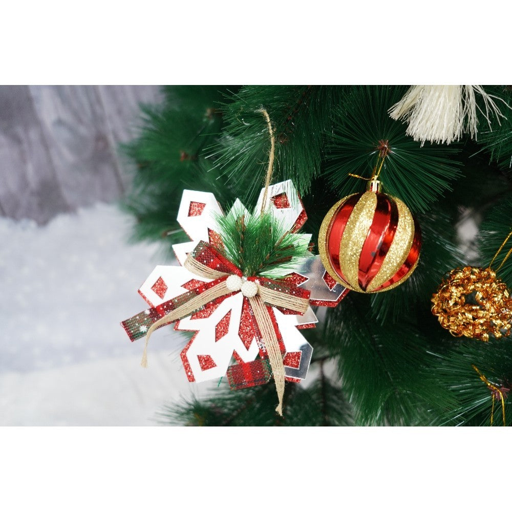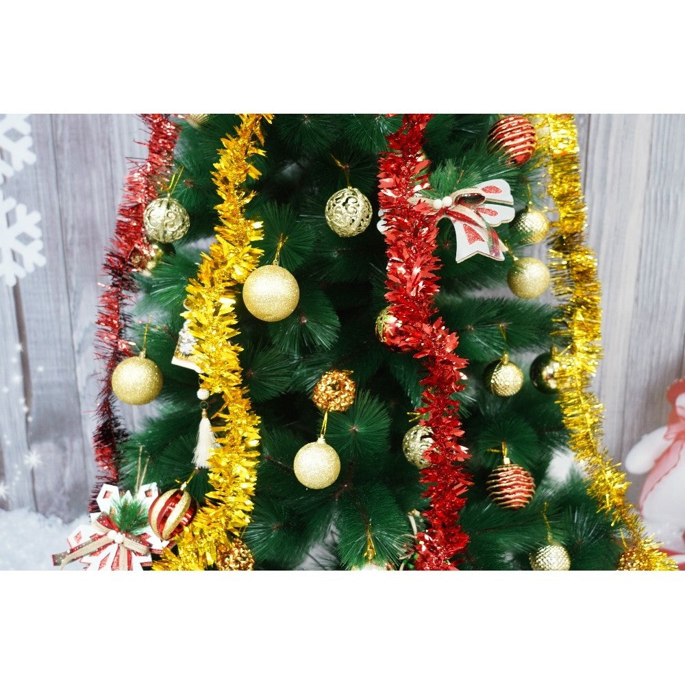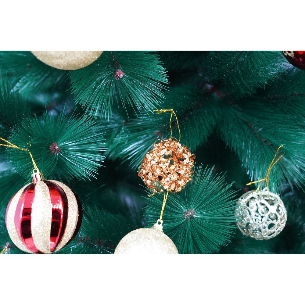 Set brad artificial de Craciun si elemente decorative tip pin, inaltime 210 cm, diametru 115 cm, 350 ramuri cu ace 3D 12 cm, Kadeny, verde, suport metalic inclus