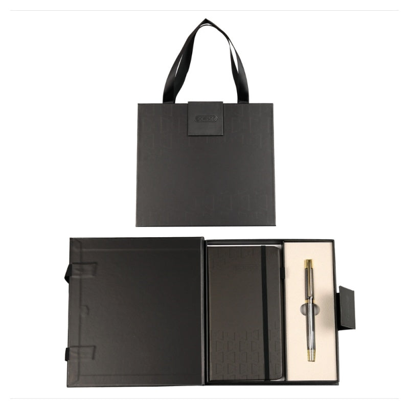 Set cadou stilou grafit/argintiu + agenda mate A6 Cresco Elegant Premium 850061-1, cutie neagra magnet