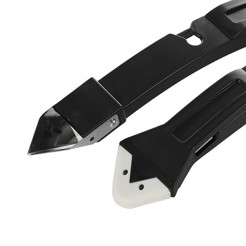 Set Racleta pentru Indepartare Adeziv, Racleta pentru Silicon si Lipici, 5 Capete din silicon, Dimensiune Inchisa 18.8 x 4 x 2.8 cm, Metal, Negru