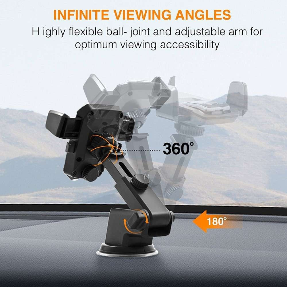 Suport auto cu functii multiple si locatii: Aceast suport poate fi montat pe diverse locatii ale masinii dvs. cu suport rotativ de 360 de grade. Rapid si usor de instalat pe parbriz sau pe orice tip de material de pe tabloul de bord al vehiculului dvs. chiar si din piele.