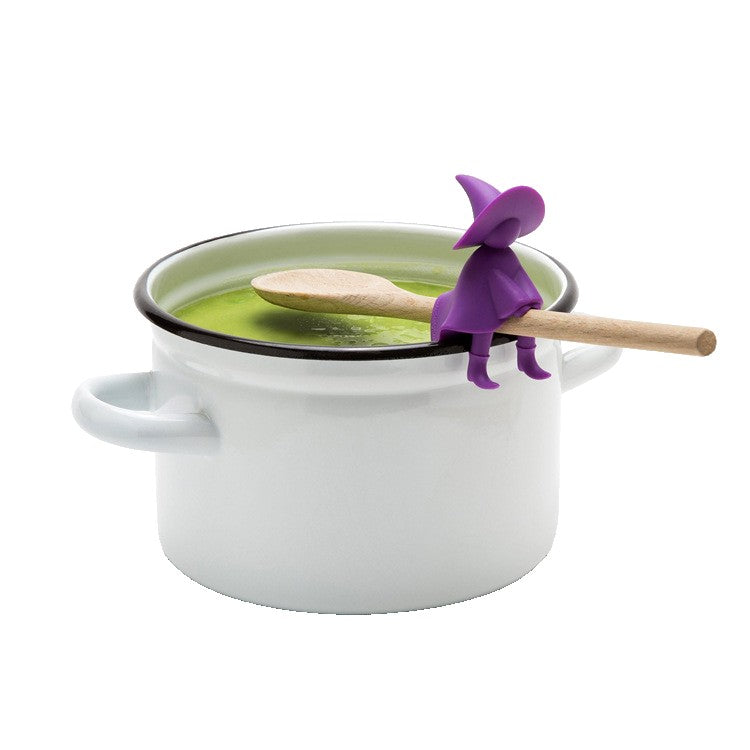 Descoperă suportul pentru capac anti-varsare și pentru lingură Flippy, model Vrajitoare, confecționat din silicon de înaltă calitate, într-un design atrăgător și inovator. Ideal pentru prevenirea revarsării din oală și menținerea lingurii într-o poziție convenabilă, acest suport este practic și eco-friendly, aducând un plus de funcționalitate și stil bucătăriei tale.