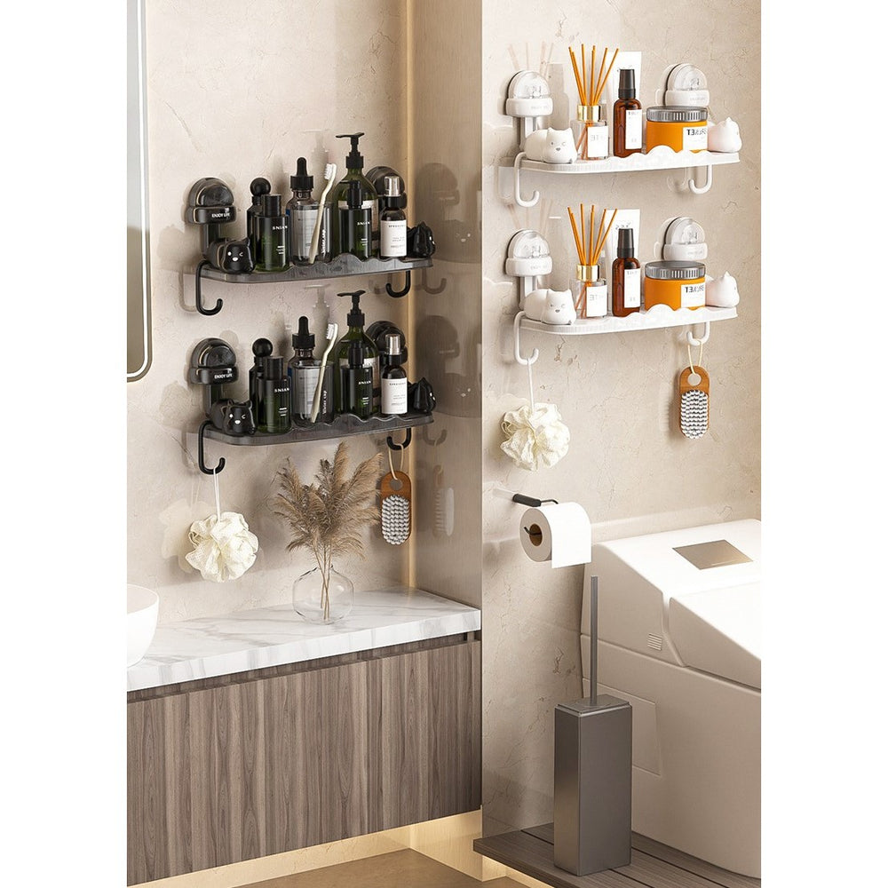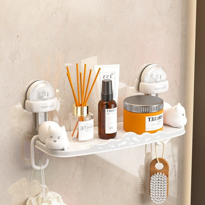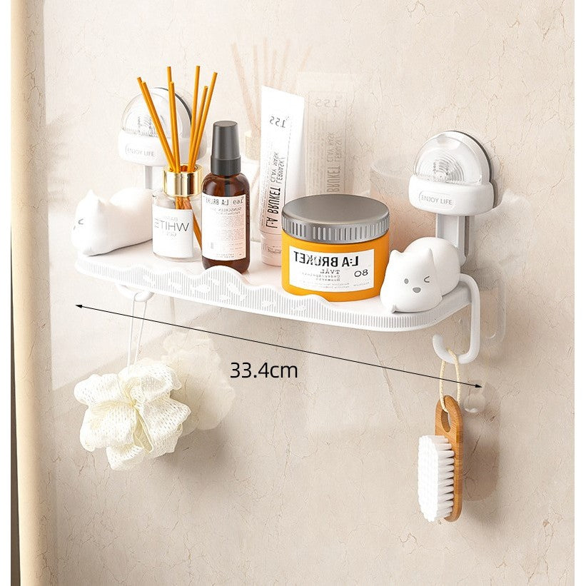 Suport pentru Baie, Kadeny, Montare pe Perete, Model Pisicute, ABS, Adeziv, Raft pentru Depozitare, 33.4x17.7 cm, Alb