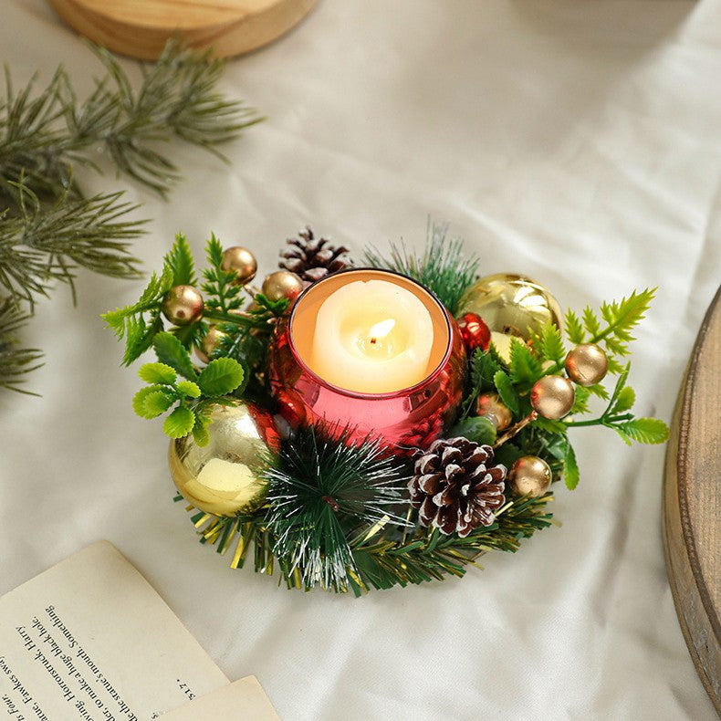 Conceput pentru a sustine o lumanare, acest sfesnic decorativ creeaza o atmosfera intima si festiva, fiind perfect pentru mesele de sarbatoare, serile relaxante in familie sau ca accent decorativ in living. Baza solida ii ofera stabilitate, iar detaliile atent lucrate precum globurile aurii si conurile naturale completeaza armonios aspectul ornamental.
