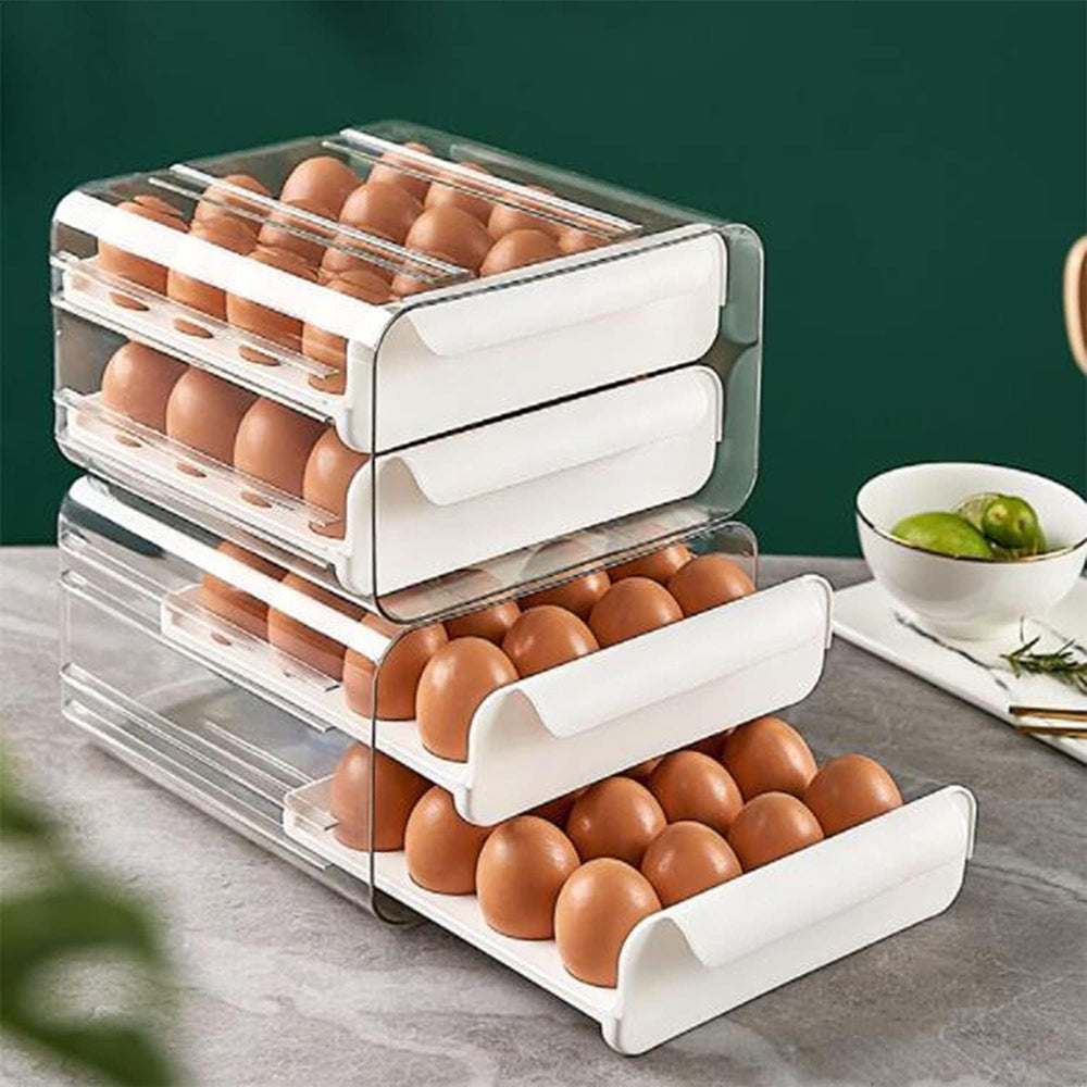 Suport pentru Oua, Kadeny, Strat Dublu, Capacitate 32 de Oua,  23.5x21.5 cm, din Plastic, Alb