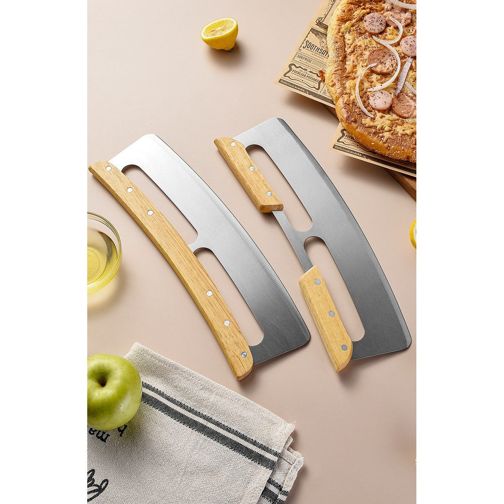 Taietor Feliator de Pizza, Kadeny, din Otel Inoxidabil, cu Capac, Maner din Lemn, Antialunecare, Lama Neteda si Ascutita, 34x10 cm, Maro