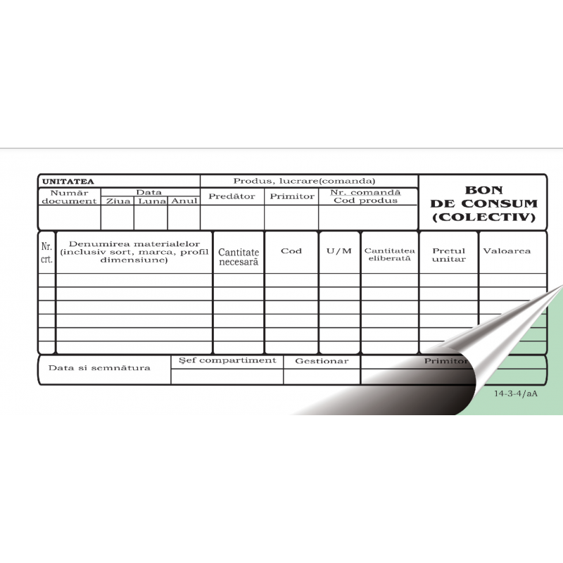 Tipizat bon consum colectiv A4, 1/2 autocopiativ 3 exemplare, landscape, carnet 50 seturi