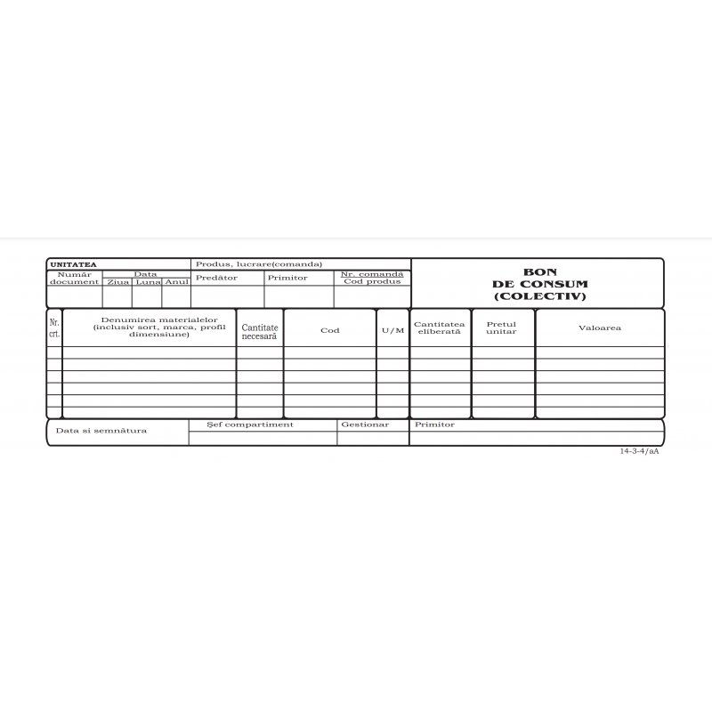 Tipizat - bon consum colectiv - 1/2 A4, landscape, simplu, 100 file