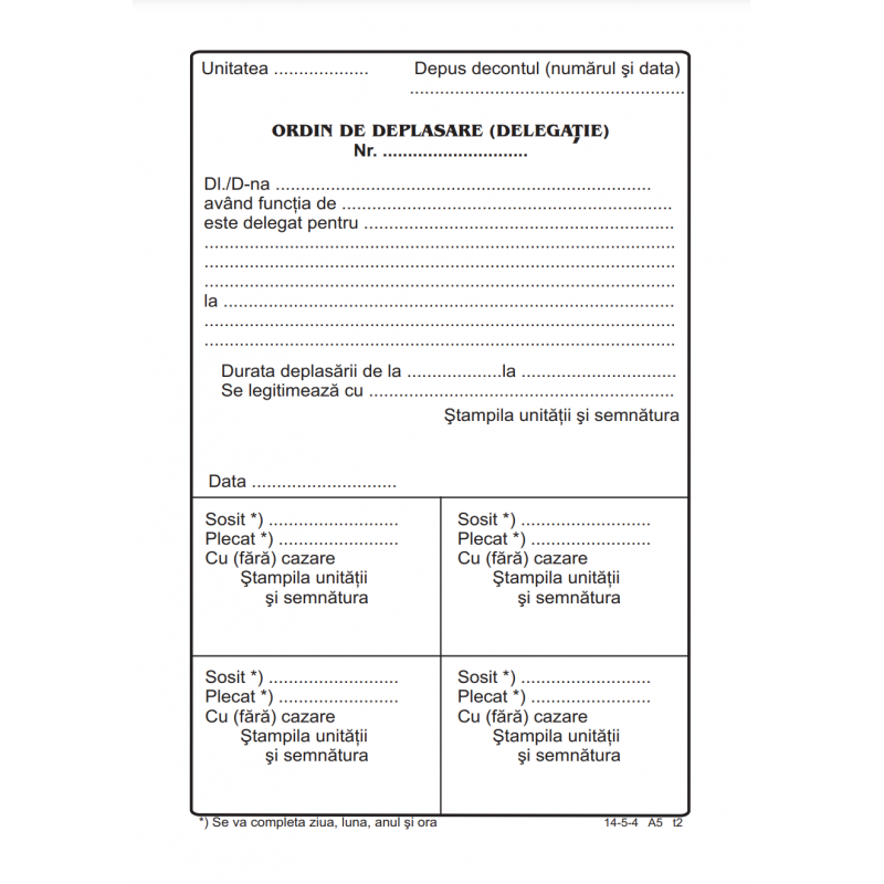 Tipizat - ordin deplasare - A5, portret, simplu, 100 file