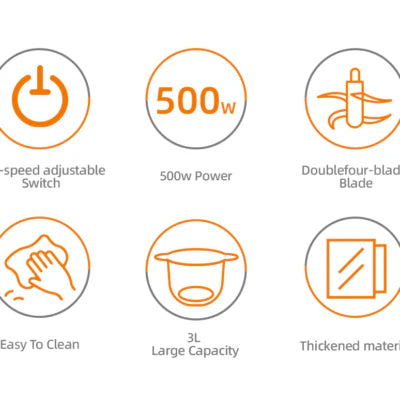 Tocatorul de alimente Haley HY-1238 este partenerul ideal pentru pregatirea rapida a ingredientelor in bucatarie. Cu un motor de 500W si un vas generos de 3 litri, aparatul este potrivit pentru legume, fructe, carne sau ierburi aromatice.