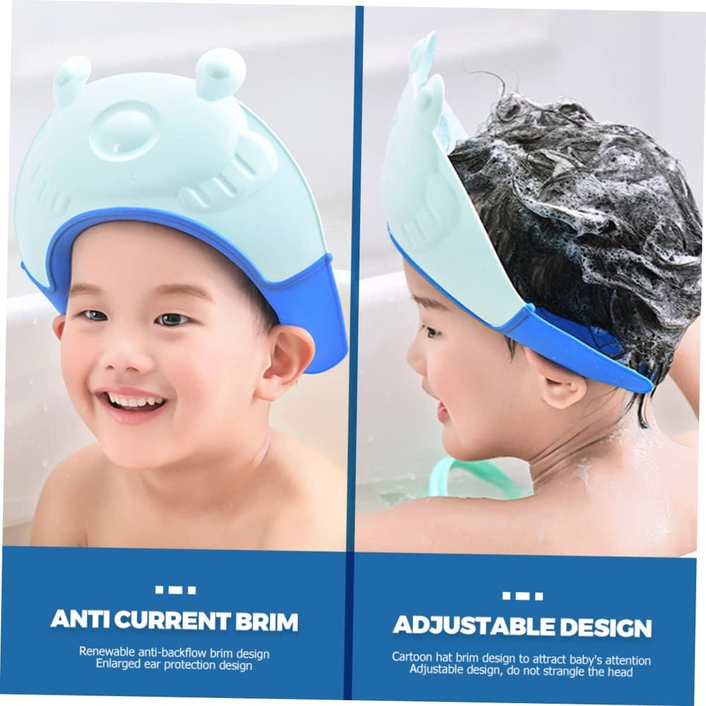 Viziera de Protectie Baie Pentru Copii, Fippy, Model Broasca, Dimensiune ajustabila, Durabil, Usor de curatat, Impotriva Samponului, pentru Ochi si Urechi, TPE+PP, 24x23 cm, Albastru