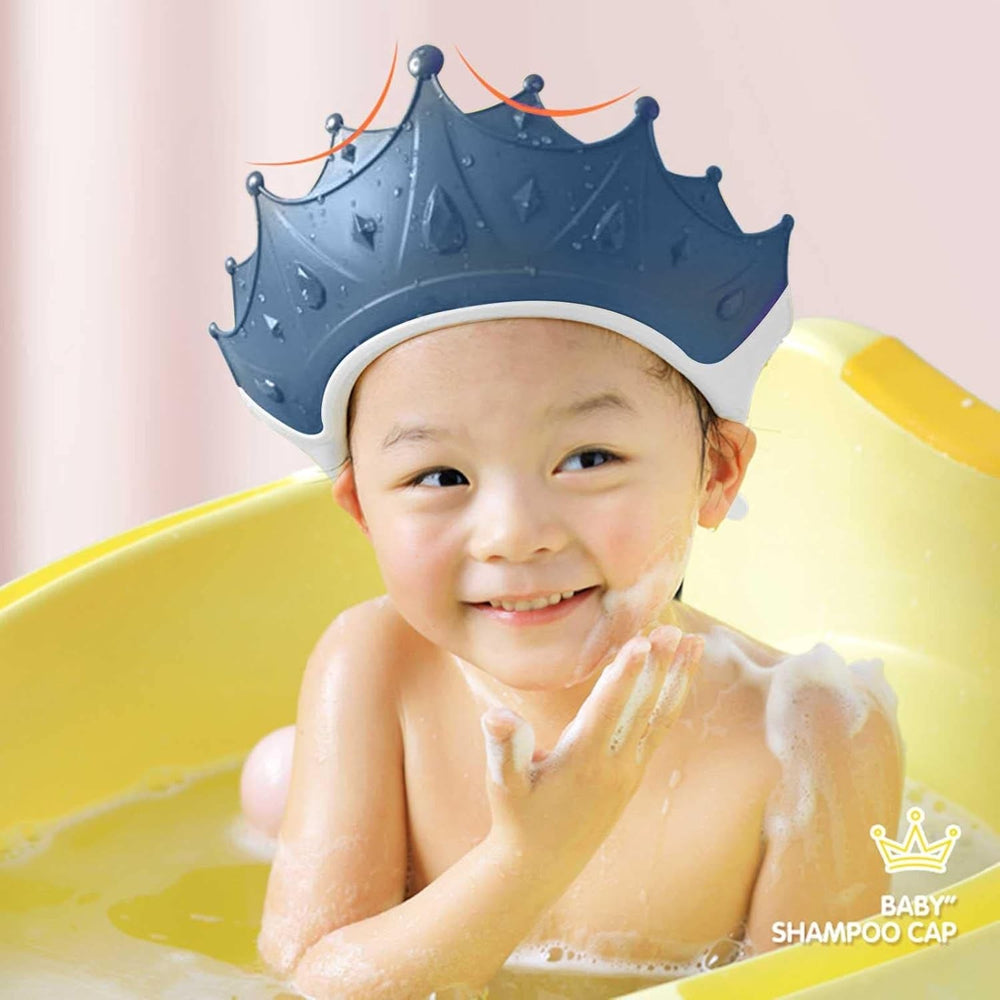 Viziera de Protectie Baie Pentru Copii, Fippy, Model Coroana, Dimensiune ajustabila, Durabil, Usor de curatat, Impotriva Samponului, pentru Ochi si Urechi, TPE+PP, 15x13 cm, Albastru Inchis