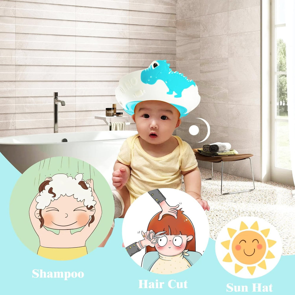 Viziera de Protectie Baie Pentru Copii, Fippy, Model Dinozaur, Dimensiune ajustabila, Durabil, Usor de curatat, Impotriva Samponului, pentru Ochi si Urechi, TPE+PP, 22x21 cm, Albastru
